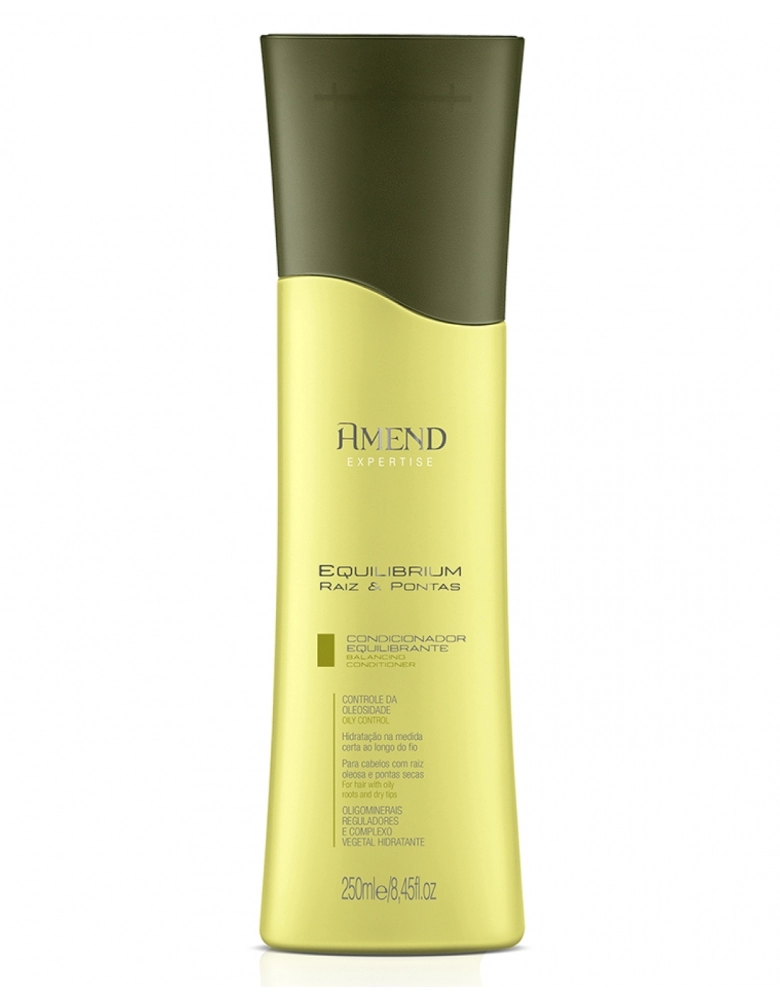 Condicionador Amend Expertise Equilibrium Raiz & Pontas possui fórmula hidrata com suavidade e na medida certa ao longo do fio. Favorece o equilíbrio da lubrificação intra e interfibras dos cabelos, recuperando a fibra, evitando a quebra, ressecamento e formação das pontas duplas.
