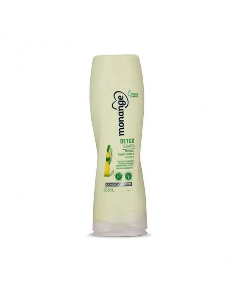 O condicionador Monange Detox Terapia vai fazer a limpeza profunda para os fios constantemente expostos a agentes poluentes e outros danos do cotidiano. Com menta, gengibre e capim limão, que possuem propriedades antioxidantes, ele nutre até a segunda camada da fibra capilar, além de suavizar as agressões externas, restaurando a beleza natural do cabelo. Produto livre de silicones, sal e parabenos.