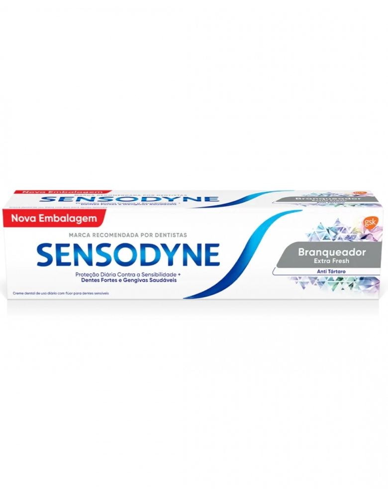 Ofereça aos seus clientes uma solução completa para o cuidado bucal com o creme dental nº1 para dentes sensíveis! Sensodyne Branqueador Extra Fresh combina proteção duradoura e branqueamento suave, ideal para um sorriso saudável e brilhante.