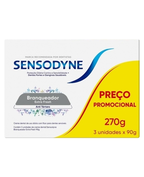 Leve a experiência de cuidado dental dos seus clientes a um novo nível com o creme dental nº1 para dentes sensíveis! Sensodyne Branqueador Extra Fresh oferece proteção completa e um sorriso radiante.