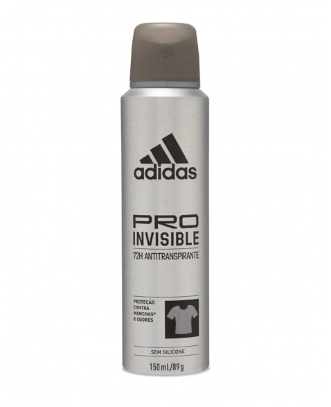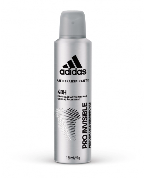 Para oferecer uma performance sem manchas, o desodorante aerossol Adidas Pro Invisible tem fórmula exclusiva desenvolvida com atletas, ação antibacteriana e sistema antimanchas brancas e amarelas, mantendo você seco e protegido por até 48 horas. Dermatologicamente testado, o desodorante aerossol Adidas Pro Invisible possui 0% de álcool, respeitando pH da pele.