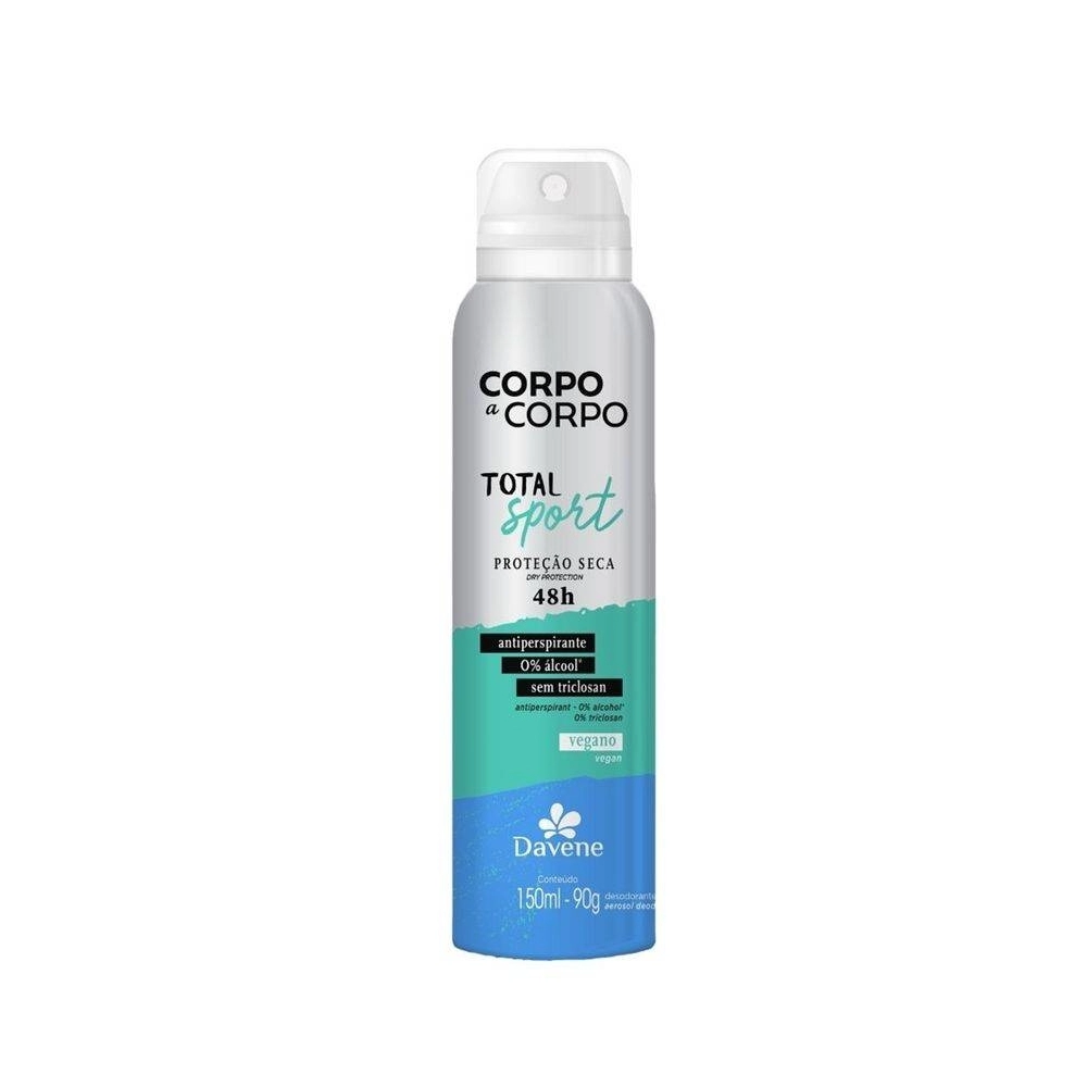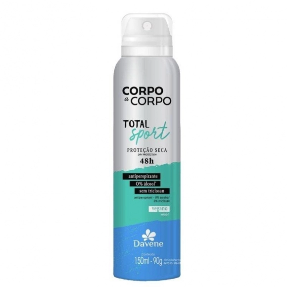 O Desodorante Antiperspirante Aerossol Corpo a Corpo Total Sport, possui proteção intensiva, toque seco e fragrância composta por notas frescas e marcantes.