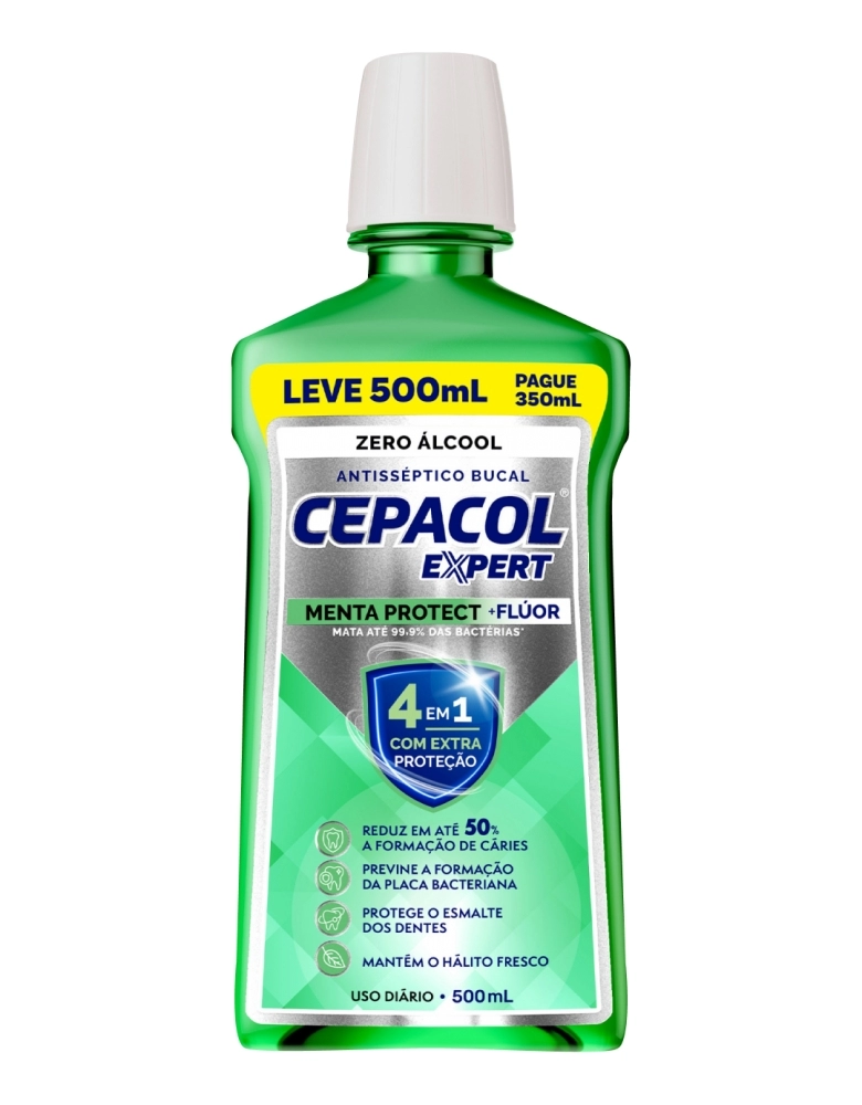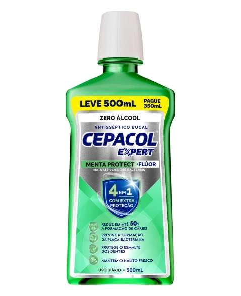 HIGIENE E BELEZA>CUIDADOS ORAIS>ENXAGUANTES BUCAIS>CEPACOL EXPERT MENTA PROTECT S/ALCOOL L500P350ML (12)