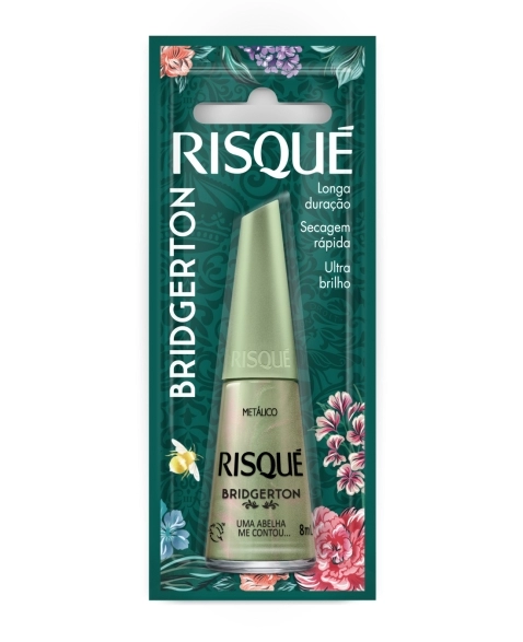 O esmalte verde Risqué Bridgerton Uma abelha me contou é metálico, de secagem rápida e com ultra brilho, além de ter longa duração nas unhas. Sua fórmula é hipoalergênica, isto é, livre de componentes que costumam causar alergias, seu pincel proporciona aplicação perfeita e alta cobertura. Além disso, todos os produtos Risqué são aprovados pelo programa Leaping Bunny da Cruelty Free International, padrão ouro globalmente reconhecido para produtos livre de crueldade animal. Inspire-se, contagie e impacte.