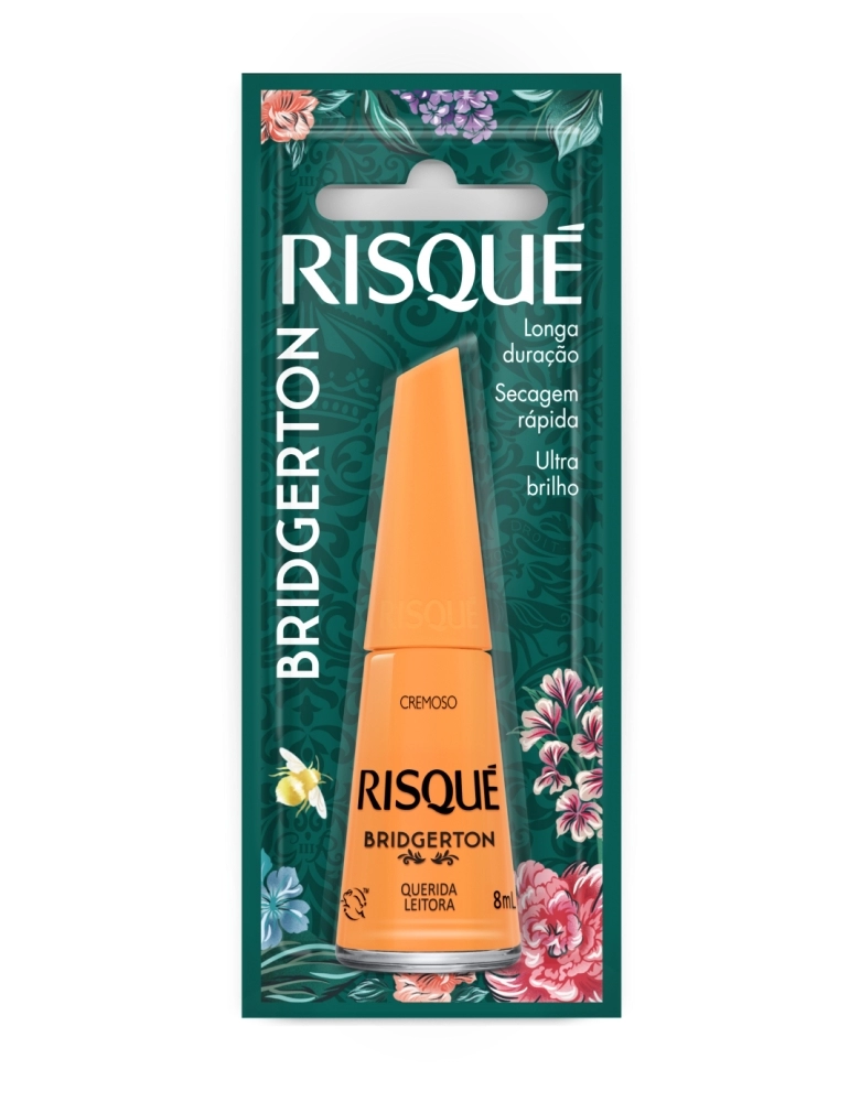 O esmalte laranja Risqué Bridgerton Querida Leitora é cremoso, de secagem rápida e com ultra brilho, além de ter longa duração nas unhas. Sua fórmula é hipoalergênica, isto é, livre de componentes que costumam causar alergias, seu pincel proporciona aplicação perfeita e alta cobertura. Além disso, todos os produtos Risqué são aprovados pelo programa Leaping Bunny da Cruelty Free International, padrão ouro globalmente reconhecido para produtos livre de crueldade animal. Inspire-se, contagie e impacte.