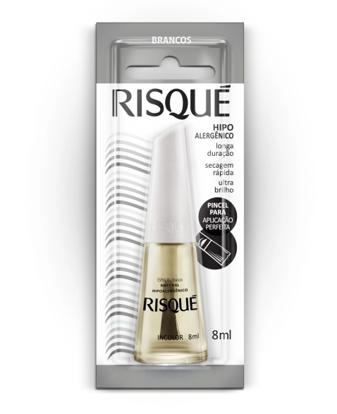 O esmalte Risqué Incolor possui secagem rápida e ultra brilho, além de ter longa duração nas unhas. Sua fórmula é hipoalergênica, isto é, livre de componentes que costumam causar alergias e seu pincel proporciona aplicação perfeita e alta cobertura. Discreto e elegante, o Esmalte Risqué Incolor é perfeito para ser usado em todas as ocasiões.