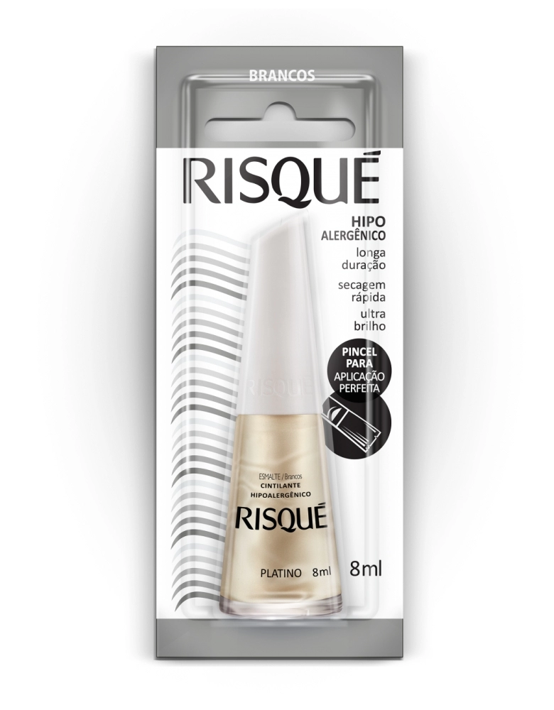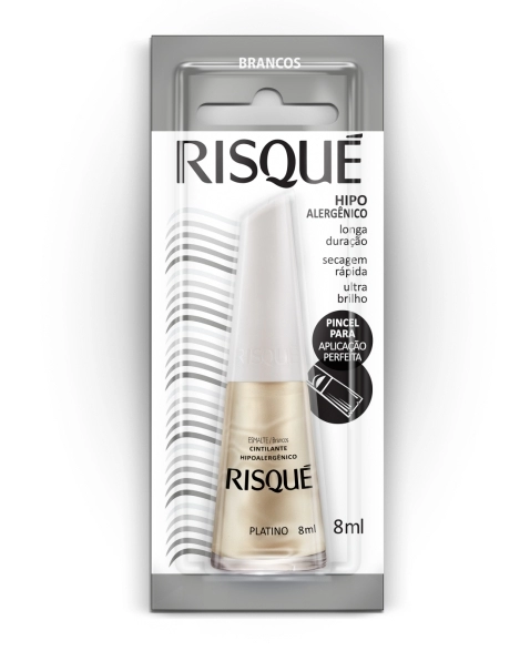 O esmalte Risqué Branco Platino possui cobertura cintilante, de secagem rápida e com ultra brilho, além de ter longa duração nas unhas. Sua fórmula é hipoalergênica, isto é, livre de componentes que costumam causar alergias e seu pincel proporciona aplicação perfeita e alta cobertura. Toda a linha de esmaltes Risqué apresenta textura única, cores elegantes e acompanha as tendências da moda, possibilitando diversas composições de looks e maximizando a beleza da sua maquiagem e acessórios. Apaixone-se pela cor, presencie a longa duração e viva a beleza de suas unhas de forma única com o Esmalte Risqué Branco Cintilante Platino.