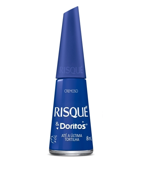 O esmalte azul Risqué & Doritos Até a Última Tortilha é cremoso, de secagem rápida e com ultra brilho. Seu pincel proporciona uma aplicação perfeita e alta cobertura. Além disso, possui longa duração e fórmula hipoalergênica, sendo livre de componentes que costumam causar alergias. Todos os produtos Risqué são aprovados pelo programa Leaping Bunny da Cruelty Free International, padrão ouro globalmente reconhecido para produtos livre de crueldade animal. A nova coleção Risqué & Doritos te inspira a se desconectar de preconceitos, deixando para trás o que pensam de você ao escolher o que melhor representa sua essência em cada momento, seja na cor do esmalte, no seu look e até nos snacks que escolhe para dividir com as pessoas que você ama! Inspire-se, contagie e impacte. Conheça toda a Coleção Risqué & Doritos. Ouse mostrar suas cores!