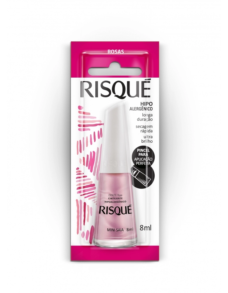 Chame a atenção para sua sensualidade com o Esmalte Risqué Rosas Cintilantes Mini Saia. Toda a linha de esmaltes Risqué Rosas Cintilantes, além de apresentar textura única e brilho perolado, acompanha as tendências da moda, possibilitando diversas composições de looks e maximizando a beleza da sua maquiagem e acessórios. Com secagem rápida, use a sua imaginação e crie lindas nails art que farão sucesso aonde quer que você vá. Com fórmula especial, livre de componentes que costumam causar alergia