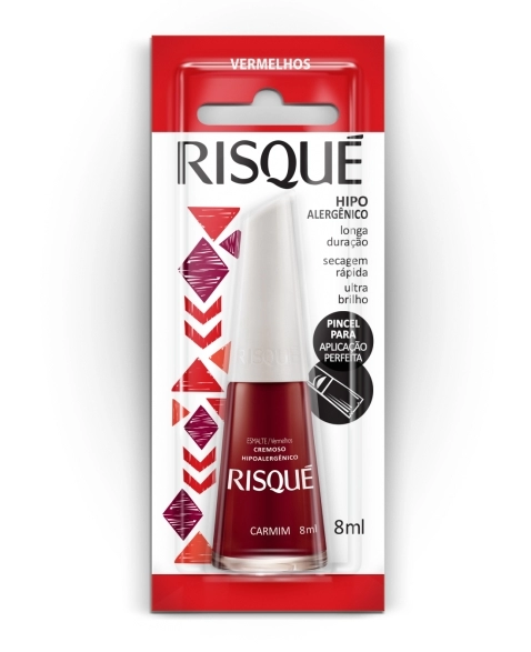 Não tem como não ser chique com o Esmalte Risqué Vermelho Cremoso Carmim. Toda a linha de esmaltes Risqué Vermelhos Cremosos, além de apresentar textura única e cores envolventes, acompanha as tendências da moda, possibilitando diversas composições de looks e maximizando a beleza da sua maquiagem e acessórios. Com secagem rápida, use a sua imaginação e crie lindas nails art que farão sucesso aonde quer que você vá. Com fórmula especial, livre de componentes que costumam causar alergias, o Esmalt