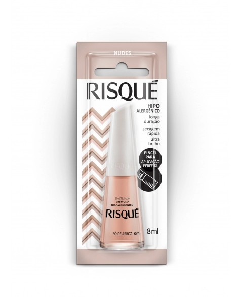 Conquiste o mundo com o Esmalte Risqué Nude Cremoso Pó De Arroz. Toda a linha de esmaltes Risqué Nude Cremoso, além de apresentar textura única e cores envolventes, acompanha as tendências da moda, possibilitando diversas composições de looks e maximizando a beleza da sua maquiagem e acessórios. Com secagem rápida, use a sua imaginação e crie lindas nails art que farão sucesso aonde quer que você vá. Com fórmula especial, livre de componentes que costumam causar alergias, o Esmalte Risqué é perf