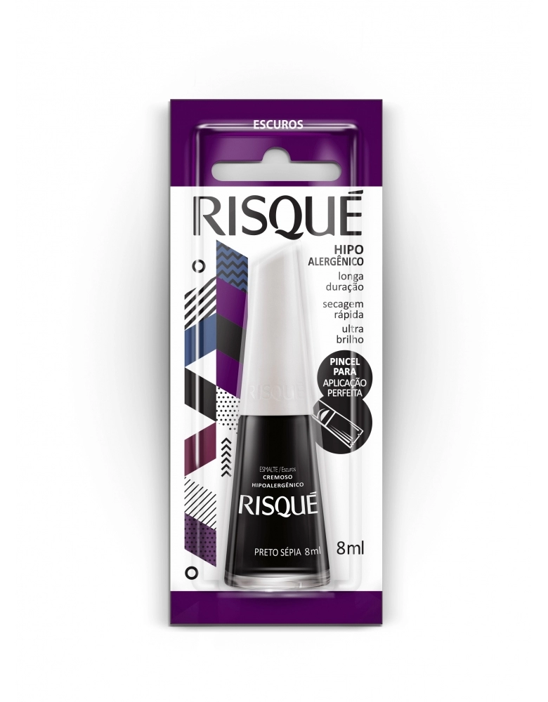Com Esmalte Risqué Escuro Cremoso Preto Sépia, a elegância estará nas suas mãos. Toda a linha de esmaltes Risqué Escuros Cremosos, além de apresentar textura única e cores marcantes, acompanha as tendências da moda, possibilitando diversas composições de looks e maximizando a beleza da sua maquiagem e acessórios. Com secagem rápida, use a sua imaginação e crie lindas nails art que farão sucesso aonde quer que você vá. Com fórmula especial, livre de componentes que costumam causar alergias, o Esm