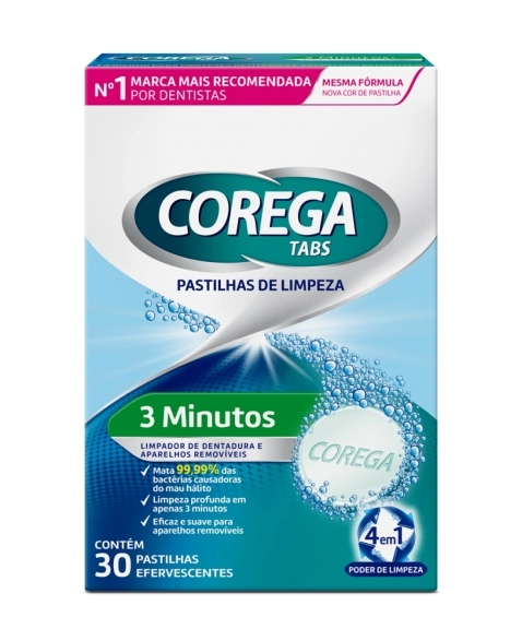 Proporcione uma limpeza rápida e eficaz para próteses dentárias e aparelhos removíveis com Corega Tabs 3 Minutos. Ideal para quem busca praticidade e eficiência no cuidado diário.