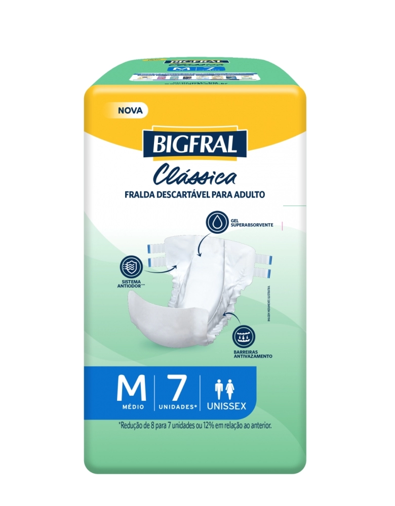 A Fralda Bigfral Clássica Regular M 7 é indicada para pessoas com incontinência moderada a intensa. Ela oferece um alto nível de proteção e conforto, com gel superabsorvente e barreiras antivazamento, além de sistema antiodor.