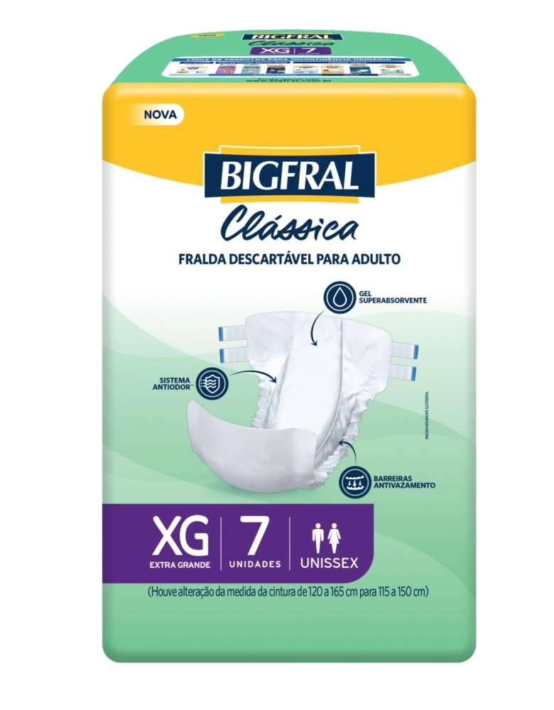 A Bigfral Clássica traz a segurança para trocas frequentes, com gel superabsorvente, barreiras antivazamento e formato anatômico.