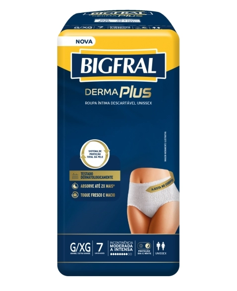 A nova Roupa Íntima Bigfral Pants Unissex é indicada para HOMENS e MULHERES com incontinência urinária moderada a intensa. Veste como sua roupa íntima habitual e garante todo conforto, discrição e segurança que você precisa para manter sua rotina.