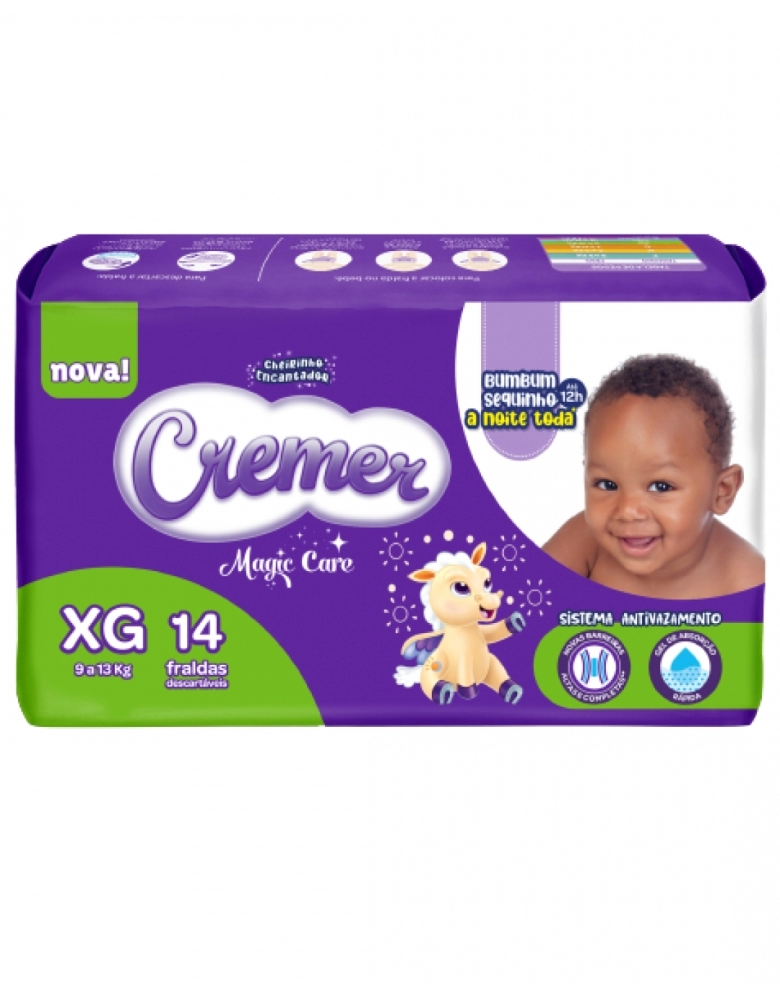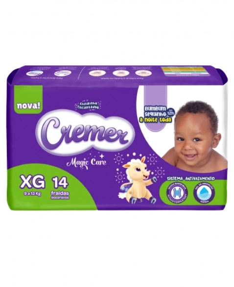 A nova fralda Cremer traz a nova tecnologia do Sistema Antivazamento que garante maior absorção do xixi e, através das barreiras mais altas, maior proteção contra vazamentos. Além disso, com até 12 horas de proteção, permite que o bebê fique sequinho noite e dia, além de confortável devido ao seu novo formato e melhor ajuste. Evitando retorno do xixi e garantindo que a pele do bebê fique bem sequinha, conta com a nova Camada Superabsorvente que distribui mais rápido o xixi pela fralda, evitando