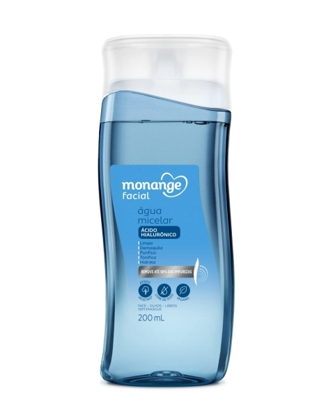 A Água Micelar com Ácido Hialurônico limpa, demaquila, purifica, tonifica e hidrata, removendo até 98% das impurezas. Reduz a oleosidade, preenche e hidrata a pele por 24h, completando a rotina de cuidados faciais.