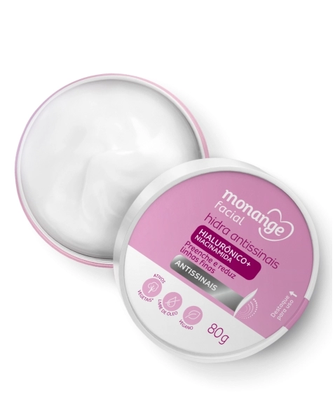 Com textura leve o Hidra Antissinais Hialurônico + Niacinamida preenche e reduz as linhas finas de expressão uniformizando o tom da pele. Hidratando por 48h, ajuda a prevenir o envelhecimento.