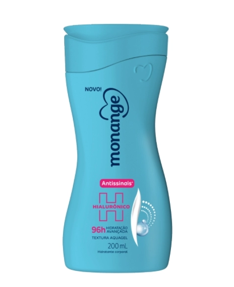 Monange Hidratante Corporal Antissinais com ácido hialurônico, previne os sinais do envelhecimento da pele e oferece 96h de hidratação avançada. Fórmula áquagel ultraleve enriquecida com ácido hialurônico, penetra na pele com maior facilidade, preenche os espaços entre as células e promove uma hidratação profundo de dentro para fora.
