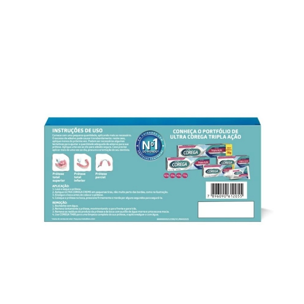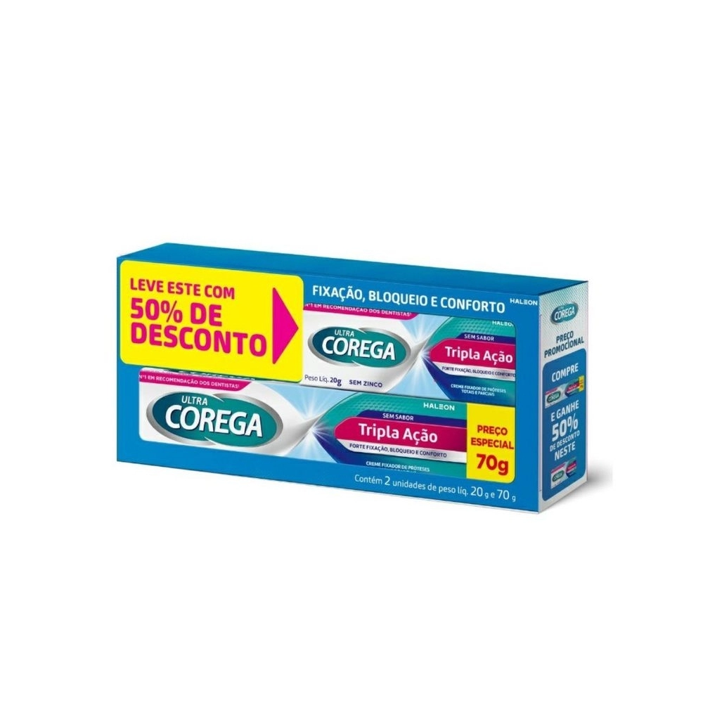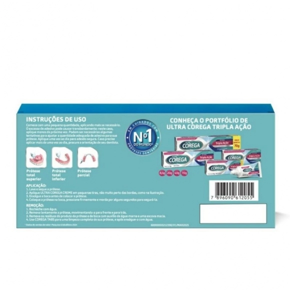 Ultra Corega Creme Tripla Ação possui: forte fixação, bloqueio e conforto para você aproveitar ainda mais os momentos do dia a dia. Ajuda a bloquear as partículas de comida que podem incomodar sua prótese total ou parcial e irritar suas gengivas.
