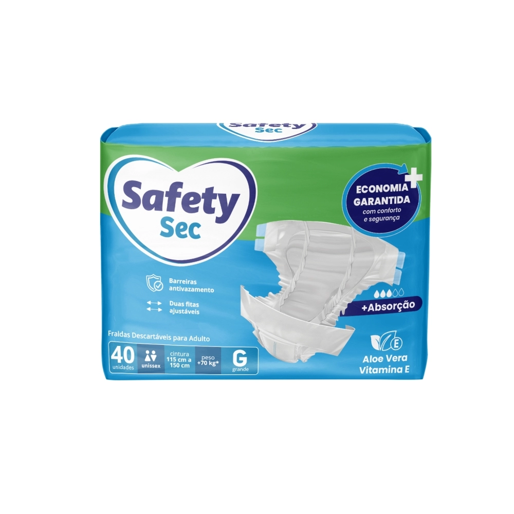 Fralda Geriátrica Safety Confort Tamanho G - Pacote com 40 Unidades A solução ideal para o cuidado diário com conforto e praticidade. Desenvolvida com tecnologia avançada anti-odor que proporciona bem-estar e confiança para o dia a dia.