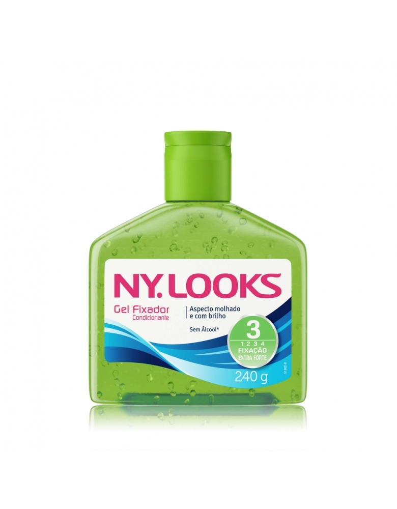 O Gel Fixador Ny Looks Fator 3 possui fixação extra forte. Com ação condicionante, ele deixa os cabelos com aspecto molhado e com brilho. Sua fórmula é livre de álcool.