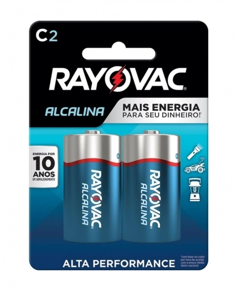 A pilha alcalina C2 da Rayovac é um produto de alta qualidade e confiabilidade. Cada embalagem contém duas pilhas, que são do tipo alcalina, com formato cilíndrico e tamanho C2 (médio). Essas pilhas são indicadas para aparelhos com alto consumo de energia, como brinquedos eletrônicos, aparelhos de medir pressão e lanternas de alto desempenho.