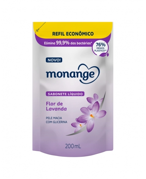 Agora também na versão refil, o Sabonete Líquido Monange Flor de Lavanda conta com 76% menos plástico em sua embalagem e é econômico. Com aroma de flor de lavanda, ele deixa a pele macia e perfumada. Sua fórmula é composta por ingredientes naturais e elimina 99% das bactérias. Toda a linha de sabonetes líquidos Monange conta com fórmulas biodegradáveis, sem corantes e livres de microplásticos. Indicado para todos os tipos de pele, o sabonete é dermatologicamente testado e recomenda-se uso corporal. Sinta na pele o equilíbrio entre maciez e proteção!