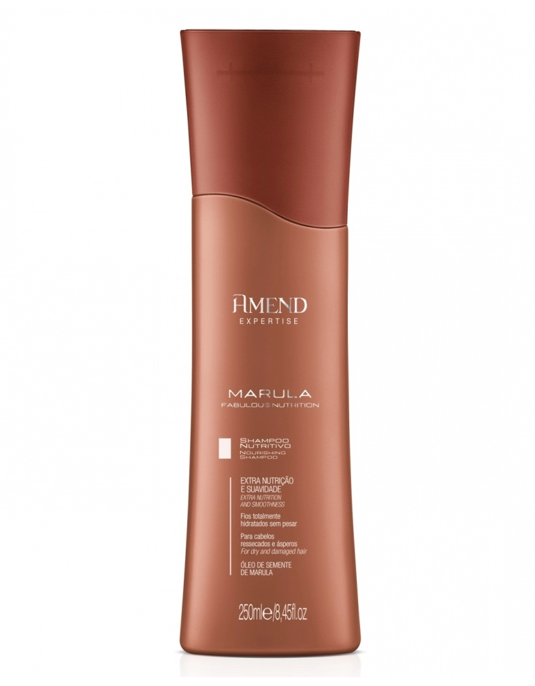 Shampoo Nutritivo Amend Expertise Marula Fabulous Nutrition limpa os fios sem agredí-los. Proporciona a nutrição necessária para os fios com aparência áspera e ressecada e que perderam a sua oleosidade natural. Protege, hidrata e acrescenta elasticidade aos cabelos trazendo vitalidade, brilho, maciez e suavidade aos fios sem pesar.