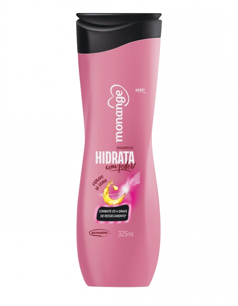 O shampoo Monange Hidrata com Poder faz parte da nova linha de produtos capilares que combate os quatro sinais dos fios ressecados: quebradiços, ásperos, com frizz e sem brilho. Sua fórmula possui extrato de oliva, que nutre até a segunda cama da fibra capilar, além de ter propriedades antioxidantes e ser rico em ácidos graxos, vitaminas A, E e sais minerais. Produto livre de parabeno.
