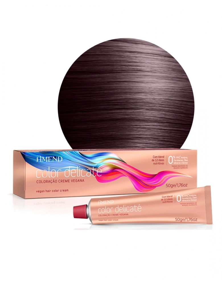 Coloração Amend Color Delicaté 55.46 Vermelho Amora creme vegana sem amônia com blend de 12 óleos nutritivos. 0% PPD*, 0% amônia, 0% parabenos, 0% óleo mineral e 0% glúten. Cores com ultradurabilidade e brilho intenso. Excelente cobertura dos cabelos brancos. Proteção contra o ressecamento, nutrição avançada e controle do frizz.