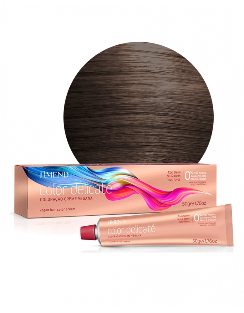 Coloração Amend Color Delicaté 7.0 Louro Médio creme vegana sem amônia com blend de 12 óleos nutritivos. 0% PPD*, 0% amônia, 0% parabenos, 0% óleo mineral e 0% glúten. Cores com ultradurabilidade e brilho intenso. Excelente cobertura dos cabelos brancos. Proteção contra o ressecamento, nutrição avançada e controle do frizz.