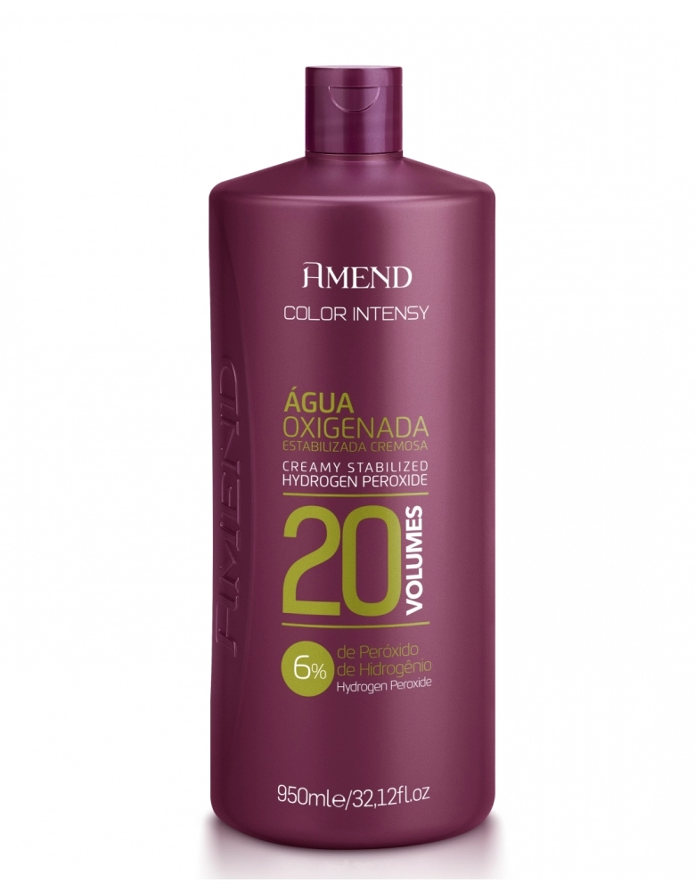 Água Oxigenada Cremosa Amend Color Intensy 20 volumes 950ml Especialmente desenvolvida para o uso com os produtos da linha Amend Color Intensy. Descolore e auxilia no tingimento dos cabelos. SÓ PARA USO PROFISSIONAL.