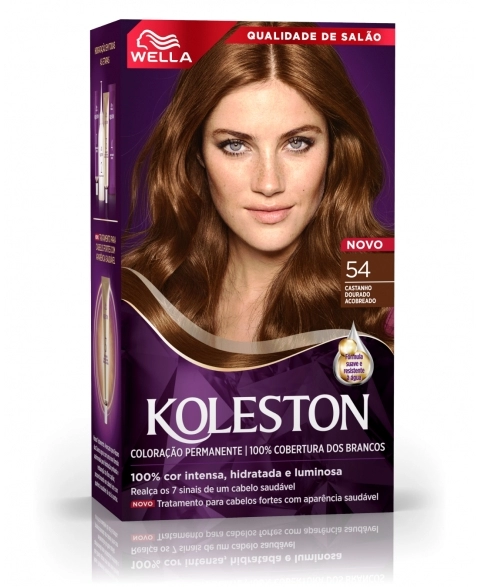 A Tinta de Cabelo Koleston Castanho Dourado Acobreado 54 é de fácil aplicação e cobre perfeitamente os fios brancos. Sua fórmula possui o exclusivo Tratamento Gloss Intenso que atua como uma barreira de proteção no cabelo para deixa-lo com mais brilho e maciez, ajudando a manter a intensidade da cor. Além disso, o kit conta também com o Reativador de Cor que deposita mais pigmentos no seu cabelo para ajudar a reaver a cor, depois de 15 dias da aplicação da tintura.