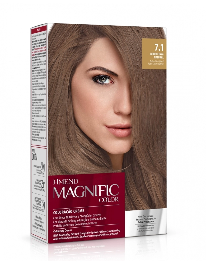 Kit Coloração Amend Magnific Color 7.1 Louro Cinza Natural uma coloração em creme que possibilita cores vibrantes de longa duração e brilho radiante. Sua fórmula é enriquecida com Proteína do Arroz que possui efeito restaurador e protetor, ou seja, a cor dos seus cabelos é renovada e a estrutura capilar preservada. Perfeita cobertura dos cabelos brancos. Finalize o processo de coloração com chave de ouro. Hidrate seus cabelos com concentrado protetor pós coloração color protection. Através de agentes repositores ele atua no fio em profundidade. Repõe a massa capilar protéica e aminoácidos perdidos, promovendo cabelos saudáveis e resistentes. Cabelos e cor protegidos por mais tempo!