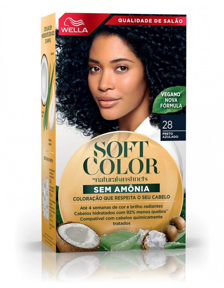 Soft Color é a coloração que te dá reflexos com brilho radiante, 90% menos queda de fios e duração de até 29 lavagens. Sua fórmula sem amônia é compatível com cabelos quimicamente tratados. E além disso, possui ingredientes naturais como Aloe Vera, Manteiga de Karitê e Óleo de Coco que garantem cuidado com seus cabelos, cobertura perfeita dos fios brancos e brilho por até 4 semanas. O kit contém um frasco com a coloração sem amônia, uma emulsão ativadora e um sachê de condicionador que realça o brilho. *Comparado a um cabelo não tratado com o condicionador do kit. Resultados podem variar de acordo com o tipo de cabelo.