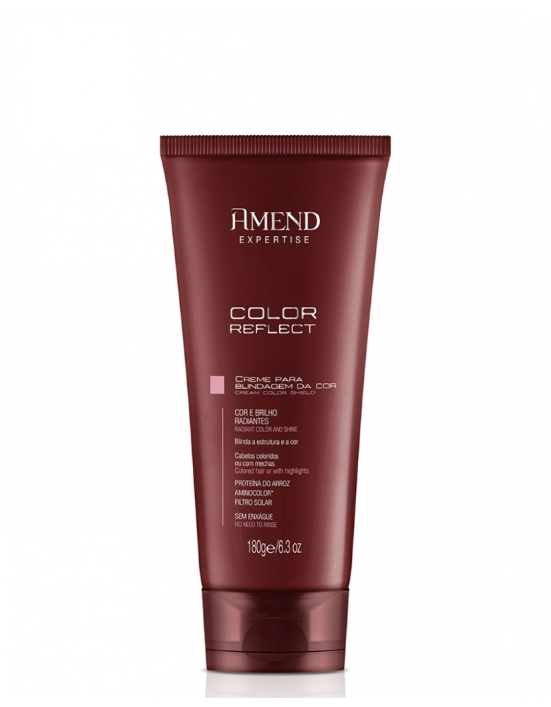 Creme Protetor da Cor Amend Expertise Color Reflect blinda a camada externa do fio, retendo os pigmentos de coloração dentro da estrutura do cabelo. Proporciona cor e brilho de longa duração. Ação antifrizz.