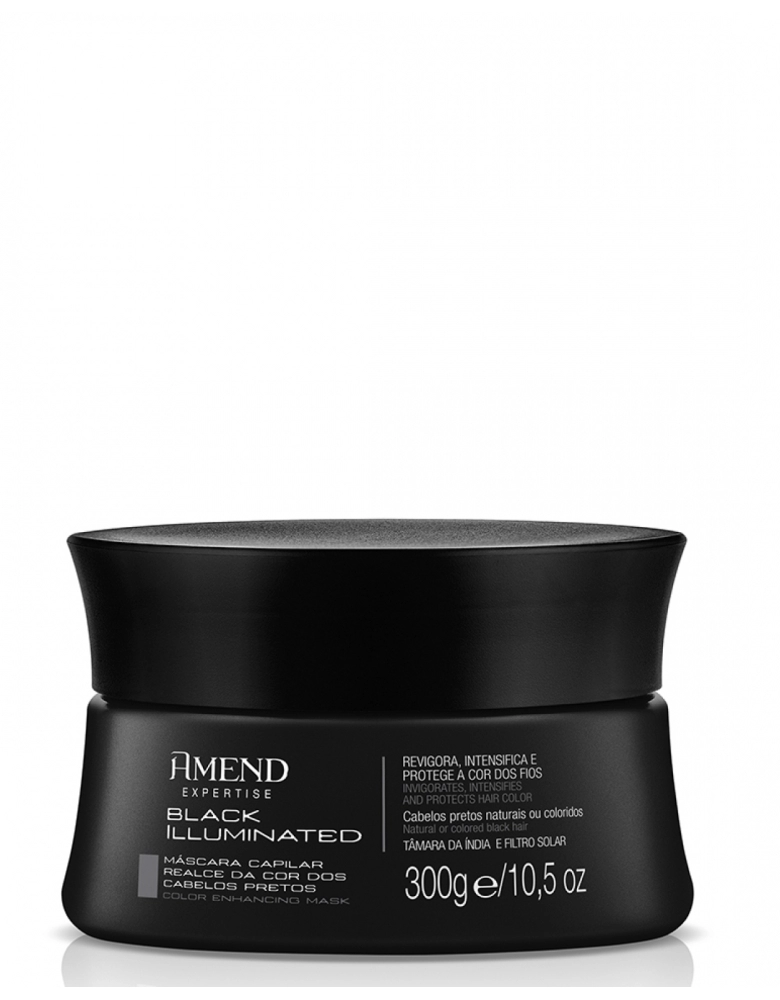 Máscara Amend Expertise Realce da Cor Black Illuminated possui pigmentos que tonalizam e intensificam a cor dos fios com tons pretos naturais ou coloridos. Proporciona hidratação profunda, brilho e possui ação antioxidante, que evita o desbotamento e ajuda a reter a cor nos fios por mais tempo.