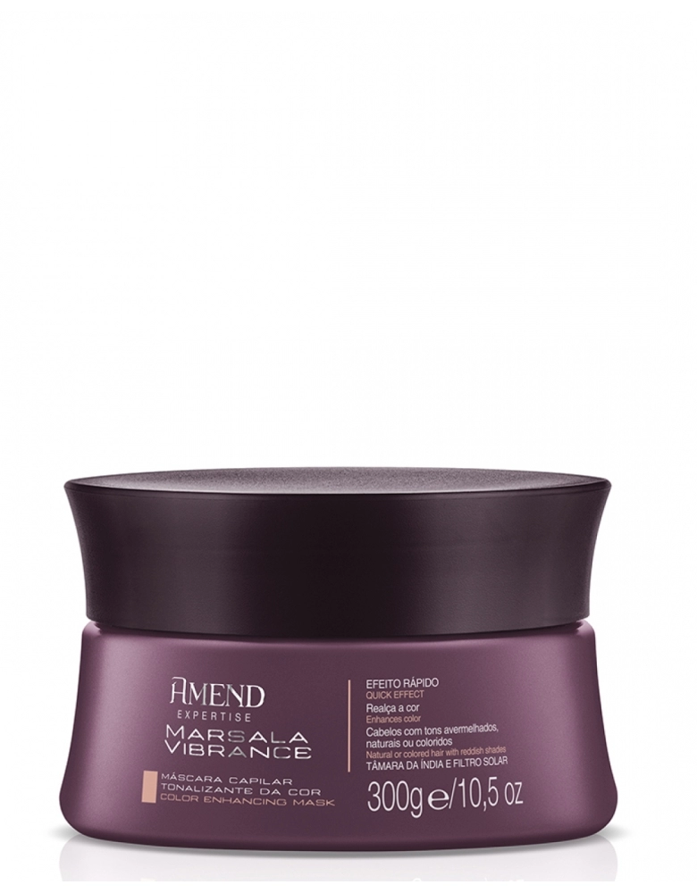 Máscara Amend Expertise Marsala Vibrance possui pigmentos que tonalizam os cabelos com a cor Marsala. Sua fórmula é enriquecida com Tâmara da Índia que mantém os cabelos hidratados e com brilho. Possui proteção antioxidante e filtro solar, que evita o desbotamento e ajuda a reter por mais tempo a cor nos fios.