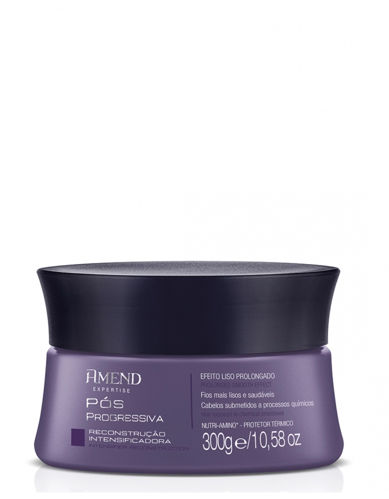 Máscara de Reconstrução Intensificadora Amend Expertise Pós Progressiva atua nas camadas mais profundas da fibra capilar. Com Nutri-Amino*, repõe os aminoácidos perdidos durante o processo de escova e resgata a resistência e força. Promove brilho, maciez e movimento natural aos fios.