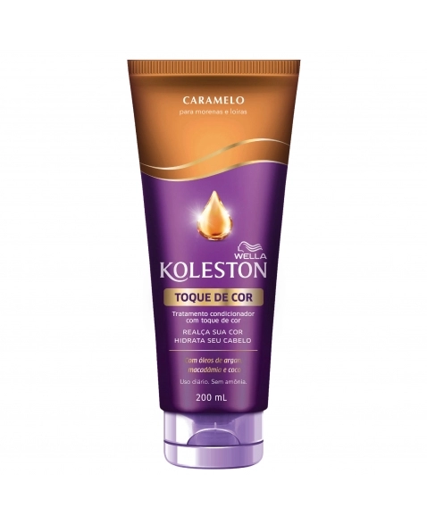O tratamento condicionador com Toque de Cor, da Koleston, realça sua cor, enquanto hidrata e nutri profundamente os cabelos, proporcionando maciez, brilho e luminosidade. O Koleston Toque de Cor Caramelo possui pigmentos tom louro dourado e é destinado para morenas e loiras.