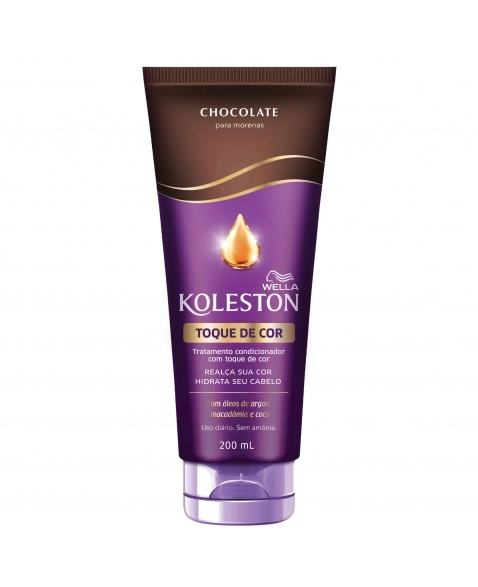 O tratamento condicionador com Toque de Cor, da Koleston, realça sua cor, enquanto hidrata e nutri profundamente os cabelos, proporcionando maciez, brilho e luminosidade. O Koleston Toque de Cor Chocolate possui pigmentos no tom castanho e a nuance é destinada para morenas.