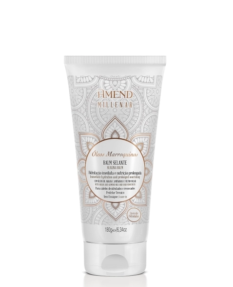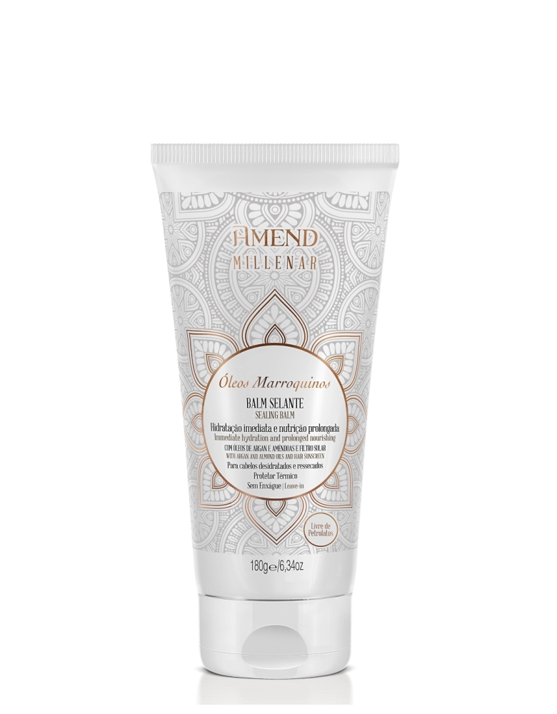 Balm Selante Amend Millenar Óleos Marroquinos inspirados nos ingredientes usados há milênios no Marrocos para os cuidados da beleza, desenvolvemos um Balm Selante sem enxágue que delicadamente melhora a penteabilidade, protege do calor do secador e das agressões causadas pelos rais UVA. Proporciona efeito suavizante, maciez, elasticidade e hidratação aos fios, através da rica combinação dos óleos marroquinos e do potente ativo protetor e disciplinante, extraído do Tamarindo.