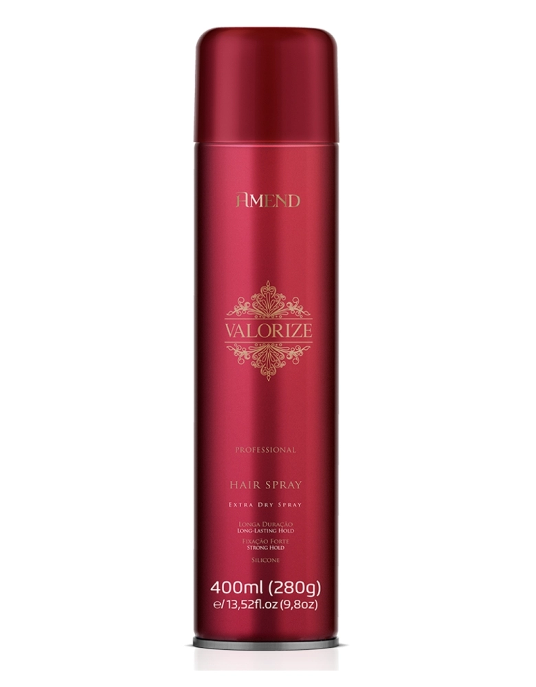 O Hair Spray Amend Valorize Forte é um spray de fixação forte de longa duração, ideal para finalizar qualquer tipo de penteado. Forma um filme flexível e brilhante, com alta resistência à umidade e proteção aos cabelos. Fácil retirada. Não deixa resíduos no fio.